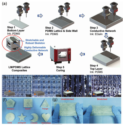 图1.LM/PDMS网格复合材料的制备过程和形貌