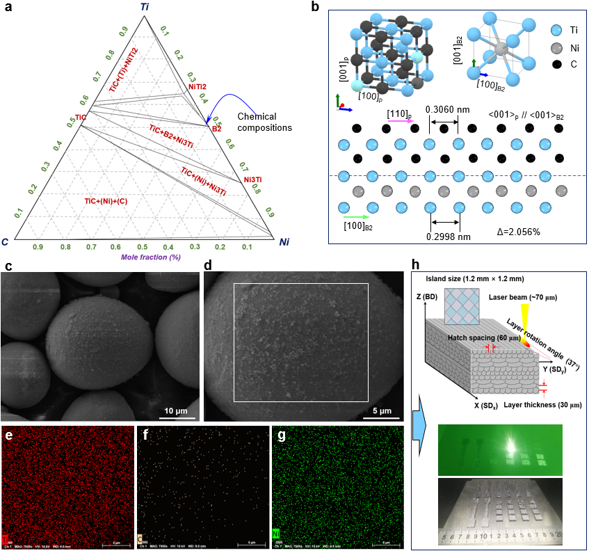 图1 TiC/NiTi超弹复合材料的粉体设计/制备与激光粉床熔化成形